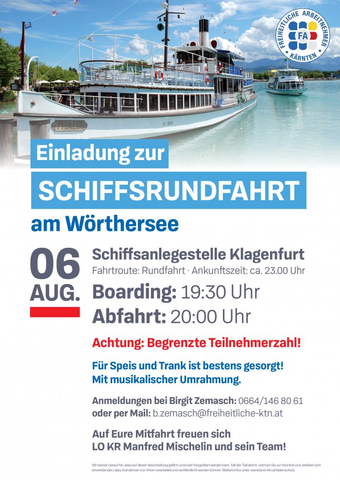 Schiffrundfahrt der Freiheitlichen Arbeitnehmer am Wörthersee